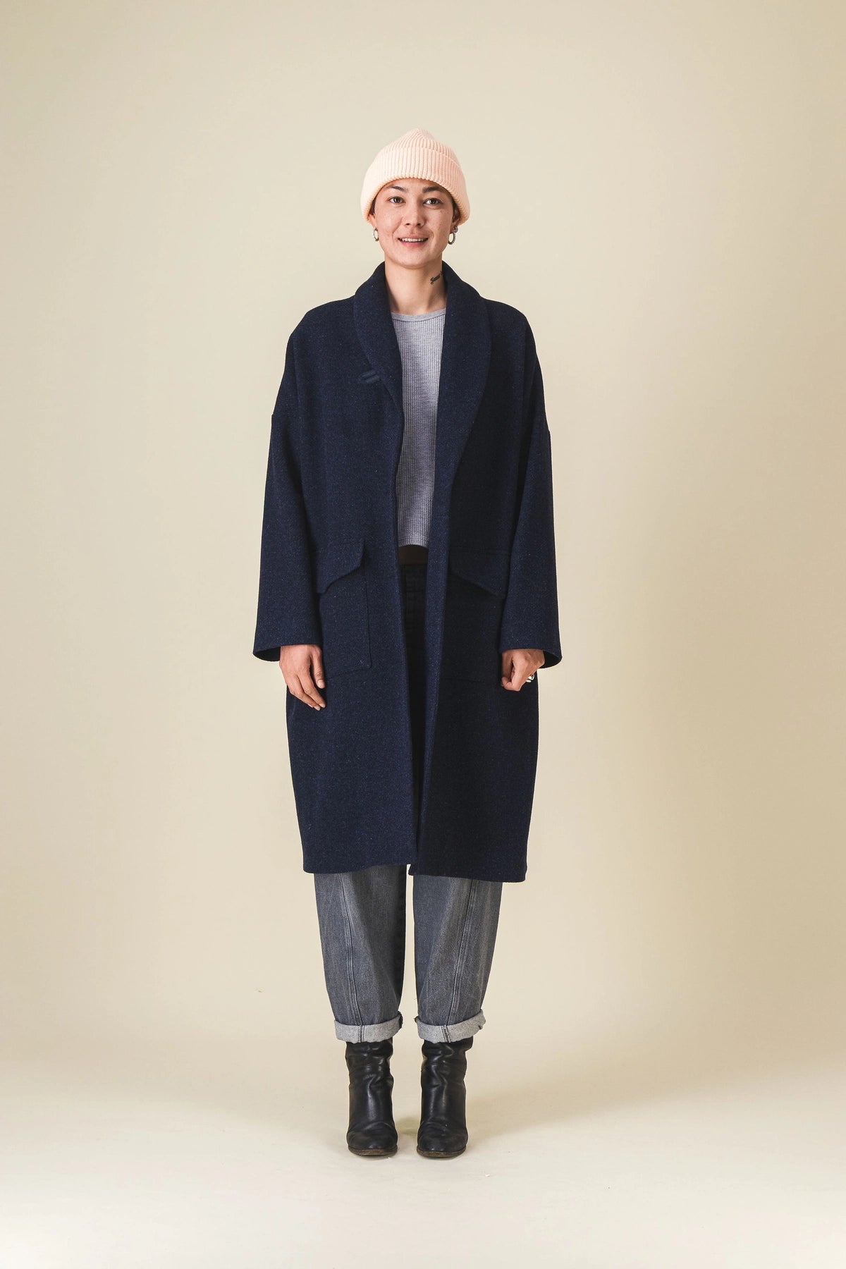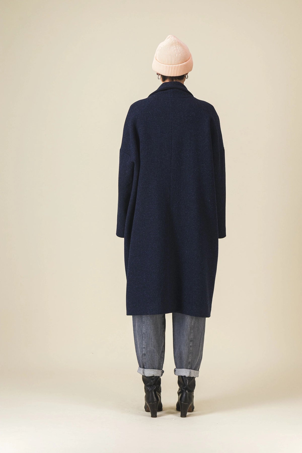 Notre manteau qu'on a plaisir à réinventer chaque hiver, en tissu marine chiné (comme la veste Manille).