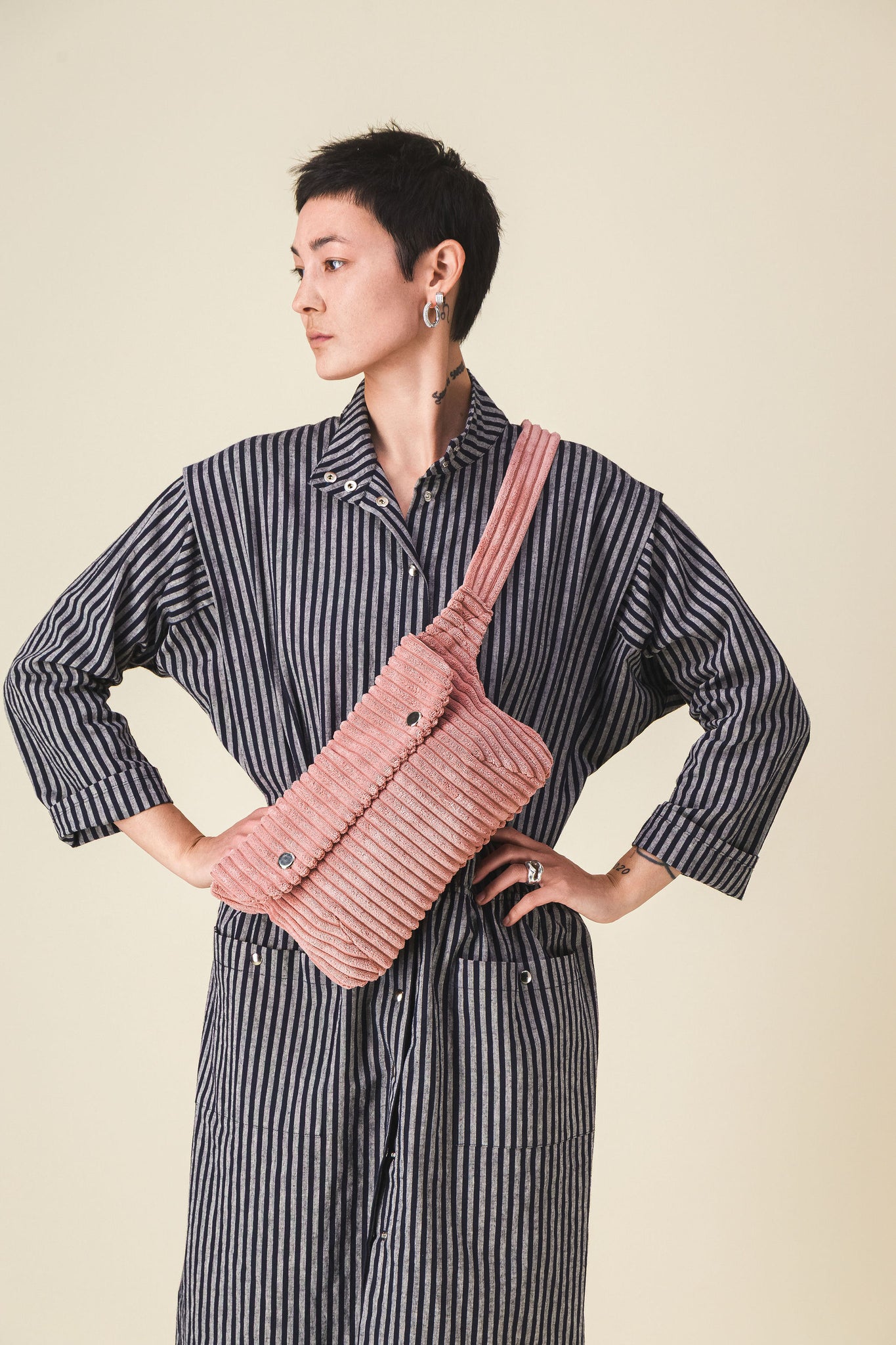 Sac côtelé grosses côtes oversize Velvet, vieux rose, taille XL.
