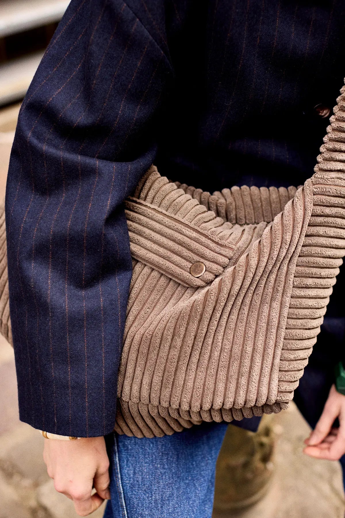 Sac besace pour femme en velours taupe.